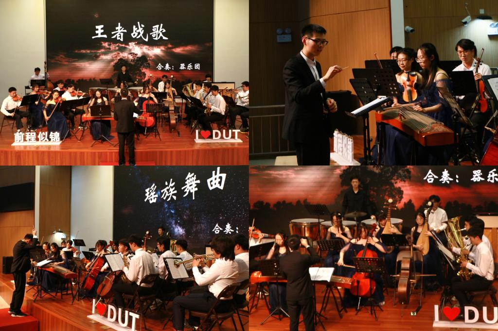 由器乐团带来的合奏《王者战歌》、《瑶族舞曲》、《太阳照常升起》,气势恢宏、大气磅礴,用音乐展现了未来无比广阔的施展才干的舞台和无比光明的实现梦想的前景,激励着学子不负母校期盼,把青春播撒在民族复兴的征程上。
