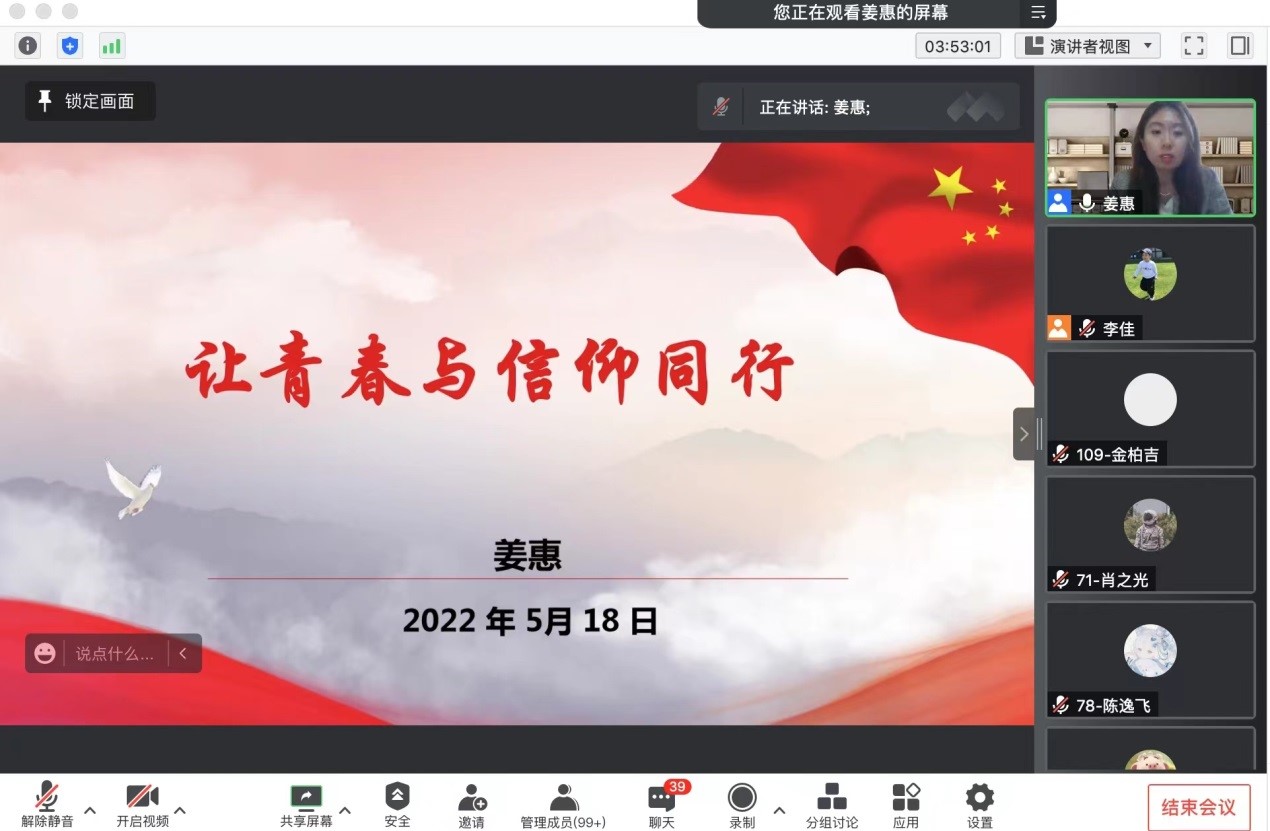 生物工程学院党委组织员姜惠开展主题为《让青春与信仰同行》的专题报告,从各个维度阐述了中国共产党为什么行,剖析了青年在中国共产党发展的历程中所展现出的磅礴力量,点明了新时代中国青年的使命,激励学员们坚定信念,攻坚克难,让信仰照亮前路,用奋斗谱写青春。