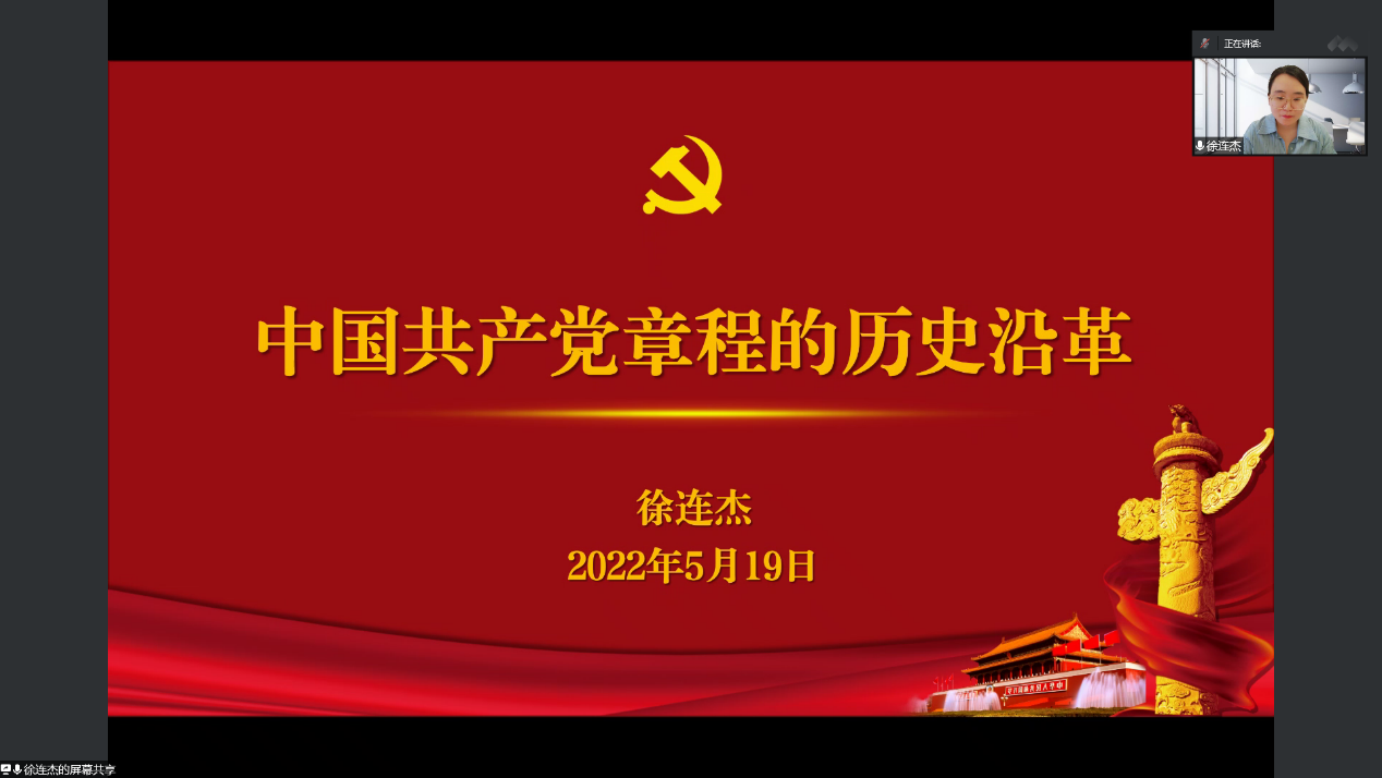 莱斯特国际学院直属党支部组织员徐连杰在《中国共产党章程的历史沿革》讲座中通过“为什么申请入党”、“党章从哪里来”两个问题引入,向学员们讲解了中国共产党章程的历史沿革,详细介绍了党员的条件和标准、党员的权利和义务,引领学员们学习党章、执行党章、贯彻党章、维护党章、永远奋斗。