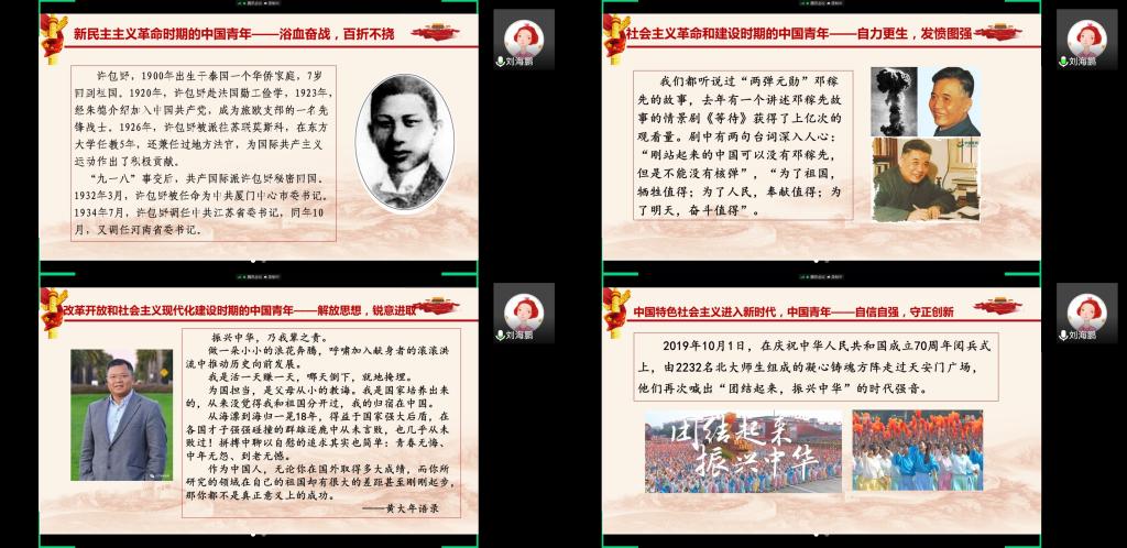 4月27日下午,大连市直机关工委办公室副主任刘海鹏老师做客“青春讲堂”,为校区团员青年作了主题为《青春百年路 奋进新征程——在矢志奋斗中谱写新时代的青春之歌》的讲座,500余名青年共聚云端,聆听讲座。