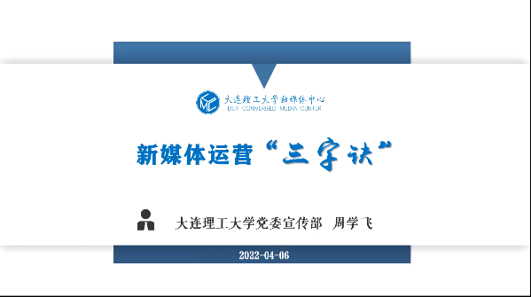 盘锦校区2022年第一期通讯员培训会于4月6日成功举办。为响应疫情防控要求,本次会议以线上的方式进行,特别邀请到大连理工大学党委宣传部新媒体工作负责教师周学飞开展《高校新媒体的“三字诀”》的专题报告,校区330余名师生全程在线学习。