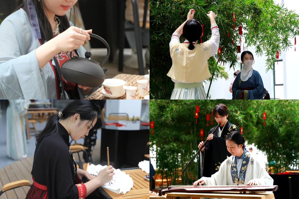 诗酒花茶,乐声清泠。衿韵古艺国风社将祈愿牌高高挂起,用团扇、折扇描绘春日的五彩斑斓。他们穿着优雅清丽的古韵汉服,品一抹淡雅,听一曲娴静,共同留下专属于春日的浪漫记忆。