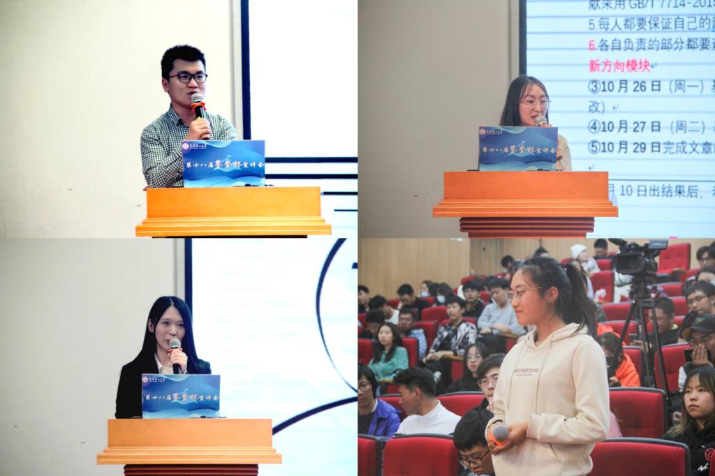 此外,参与本次宣讲会分享的还有大连理工大学化工专业的博士生刘佳鑫,以及曾获第十七届“攀登杯”一等奖和第十五届辽宁省“挑战杯”一等奖团队成员于颖若。他们先后分享了自己的参赛经历和备赛经验,还就团队分工、资料来源等方面给出了自己的建议。