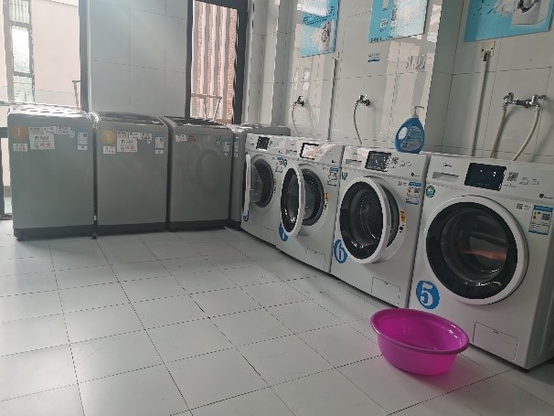 更新设施设备,进一步优化住宿环境。总务部在充分了解学生对宿舍设施需求的前提下,对宿舍设施设备进行全面升级。部分洗衣机由波轮更换为滚筒、每栋宿舍楼增加一台洗鞋机,并在部分宿舍楼内采用试点模式增加烘干机,后续根据同学对烘干机的实际需求适当增加烘干机的数量。为保障学生饮水健康,总务部、物业服务公司、饮水机厂家形成服务合力,定期对宿舍楼、教学楼等共47台饮水机进行更换滤芯、维修维护。同时,为保障宿舍用电安全,在每栋宿舍楼的公共区域增加吹风机,并根据男女生宿舍对吹风机的需求合理分配数量。