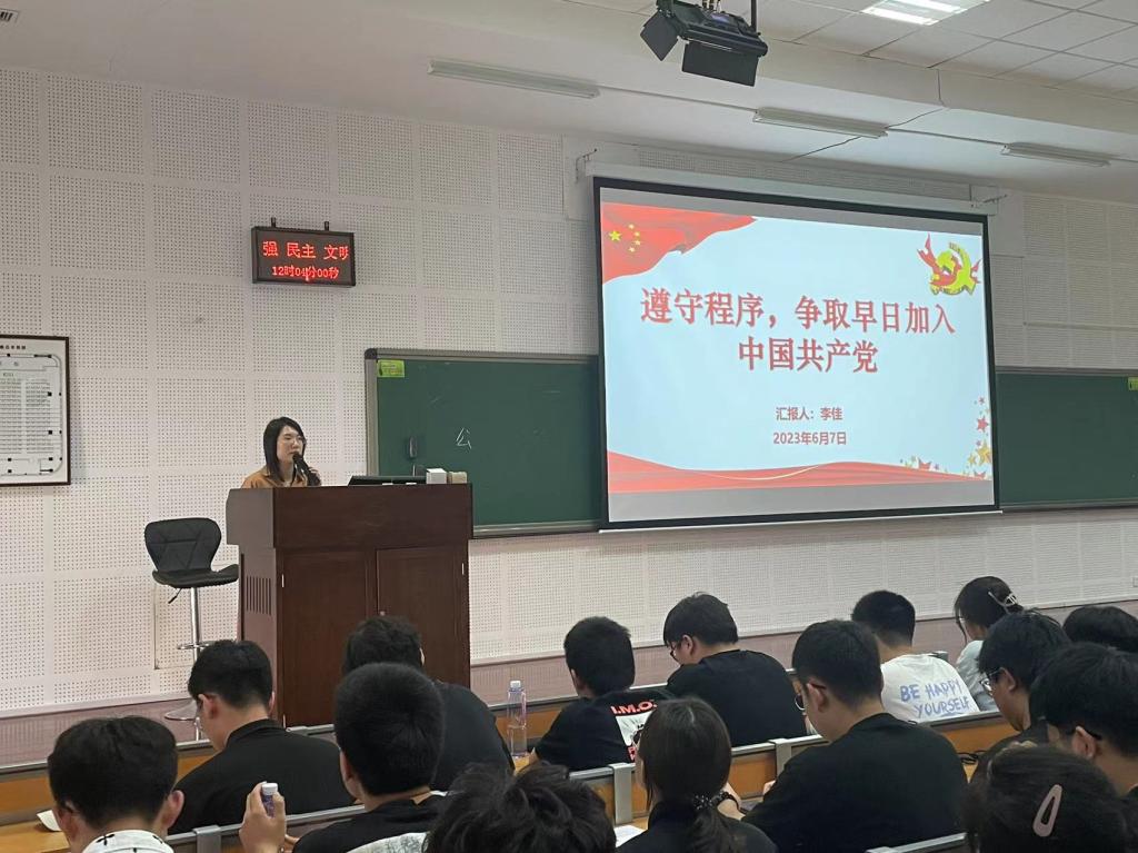 随后,海洋科学与技术学院党委组织员李佳以《遵守程序,争取早日加入中国共产党》为题,为学员们系统地介绍了党员发展的五个环节和二十五个步骤,并从入党申请书撰写、积极分子考察表填写、入党志愿书填写等相关材料的准备、提交与审批等方面做了详细介绍,让学员们更加细致、具体地了解了入党的流程。