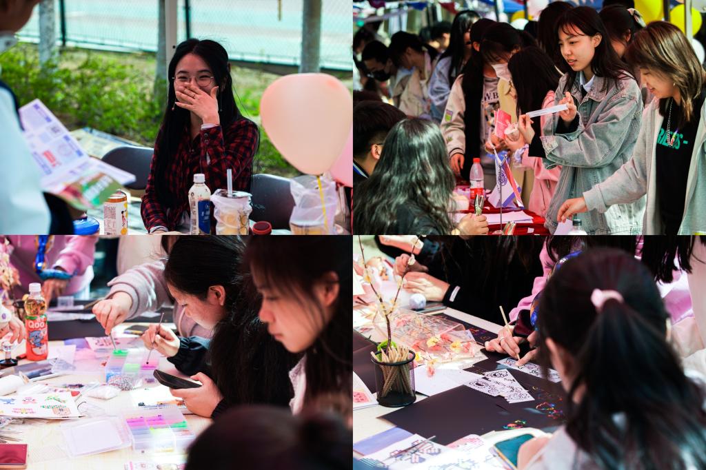 七彩摊位中,在信纸上传递美好祝福,在校史问答中细数家珍,在游戏中感受无限快乐,青春与活力在这流金岁月里约定一起绽放。