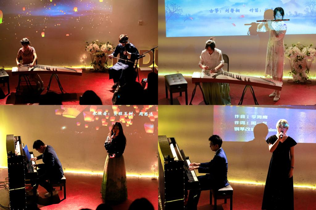 “天青色等烟雨,而我在等你”“众里寻他千百度,蓦然回首,那人却在,灯火阑珊处”。《兰亭序》《青花瓷》用国乐带来美的享受;《青玉案·元夕》《指纹》用动听的歌声带来美的触动;《七子之歌》唱响了校区学子的中国心。
