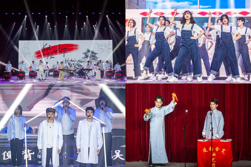 张大煜学院带来的器乐《权御天下》气势磅礴,中西乐器合璧是传统与时代的碰撞,以现代的意义将民族乐章一一呈现。建筑与艺术学院的舞蹈《青春未来式》则展示了童真洒脱的纯粹、忠于梦想的毅力和坚持自我的执着。生物工程学院的歌曲《星星点灯》致敬那些为了追逐科研梦想而努力拼搏的新时代青年。运载工程与力学学部的相声《家的协奏曲》,幽默中饱含温情,体现了家风建设在一个人的成长过程当中起着重要的作用。