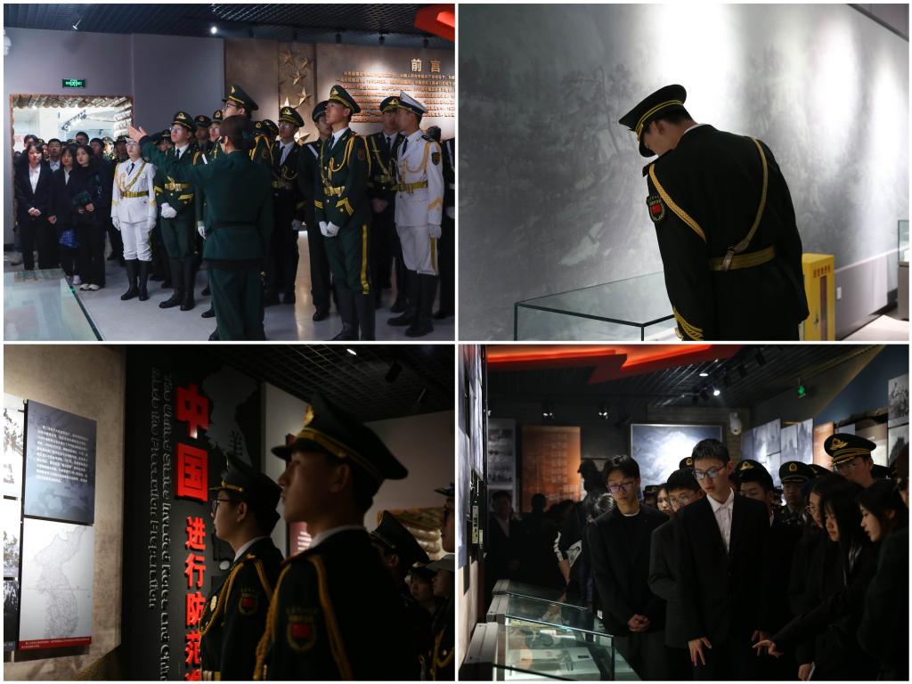 献花仪式结束后,全体同学进入抗美援朝纪念博物馆,跟随工作人员的引领学习了抗美援朝战役的详细战况及其背后的故事,在一件件抗战遗留物与荣誉勋章中感受当年战争的艰苦与激烈,体会先烈们的艰难和当今和平的来之不易。