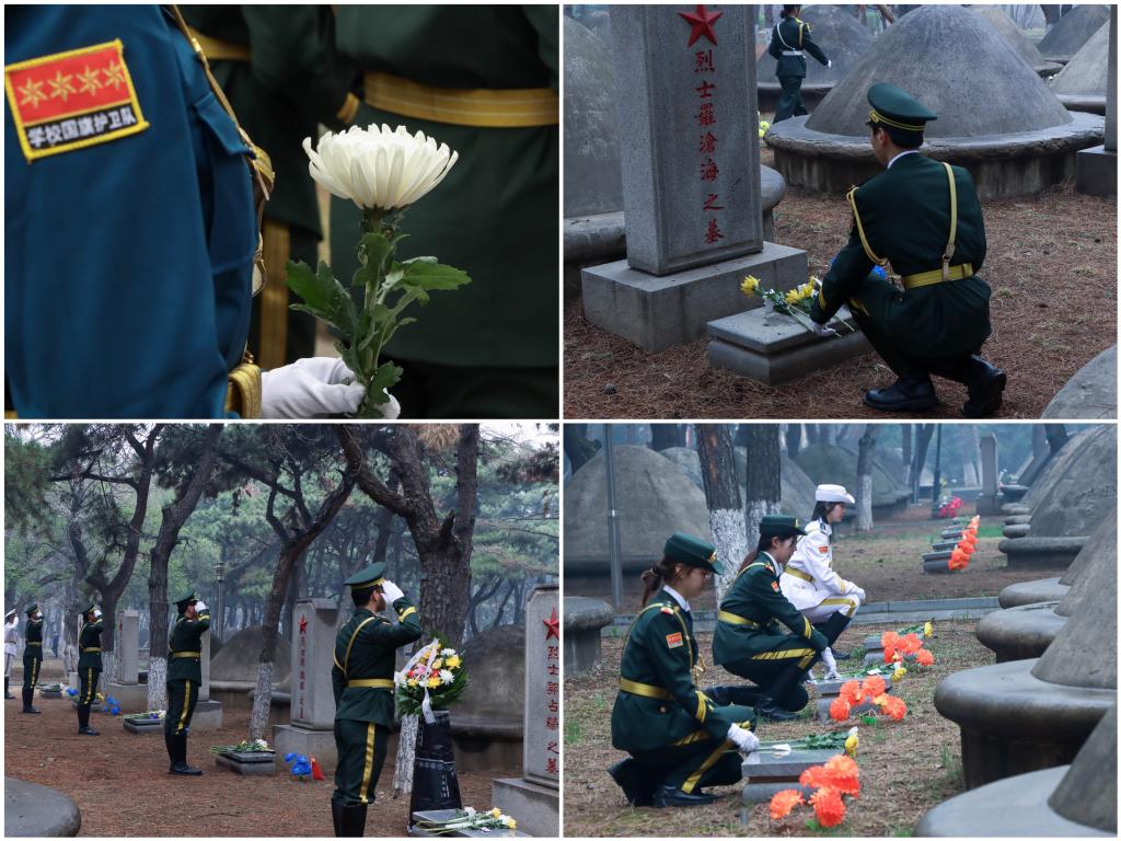 在烈士墓碑前,工作人员的指引和讲解帮助大家了解了当年为国捐躯的伟大战士们的英勇事迹,同学们于墓碑前有序为先烈代祭校区青年义捐的鲜花,每朵鲜花上都系着敬献人的姓名和寄语。这一座座的丰碑,象征着一份份忠诚,正是烈士们的浴血前行才为我们的同袍拼得一个无恙山河,他们的事迹值得我们缅怀,他们的精神值得我们歌颂。