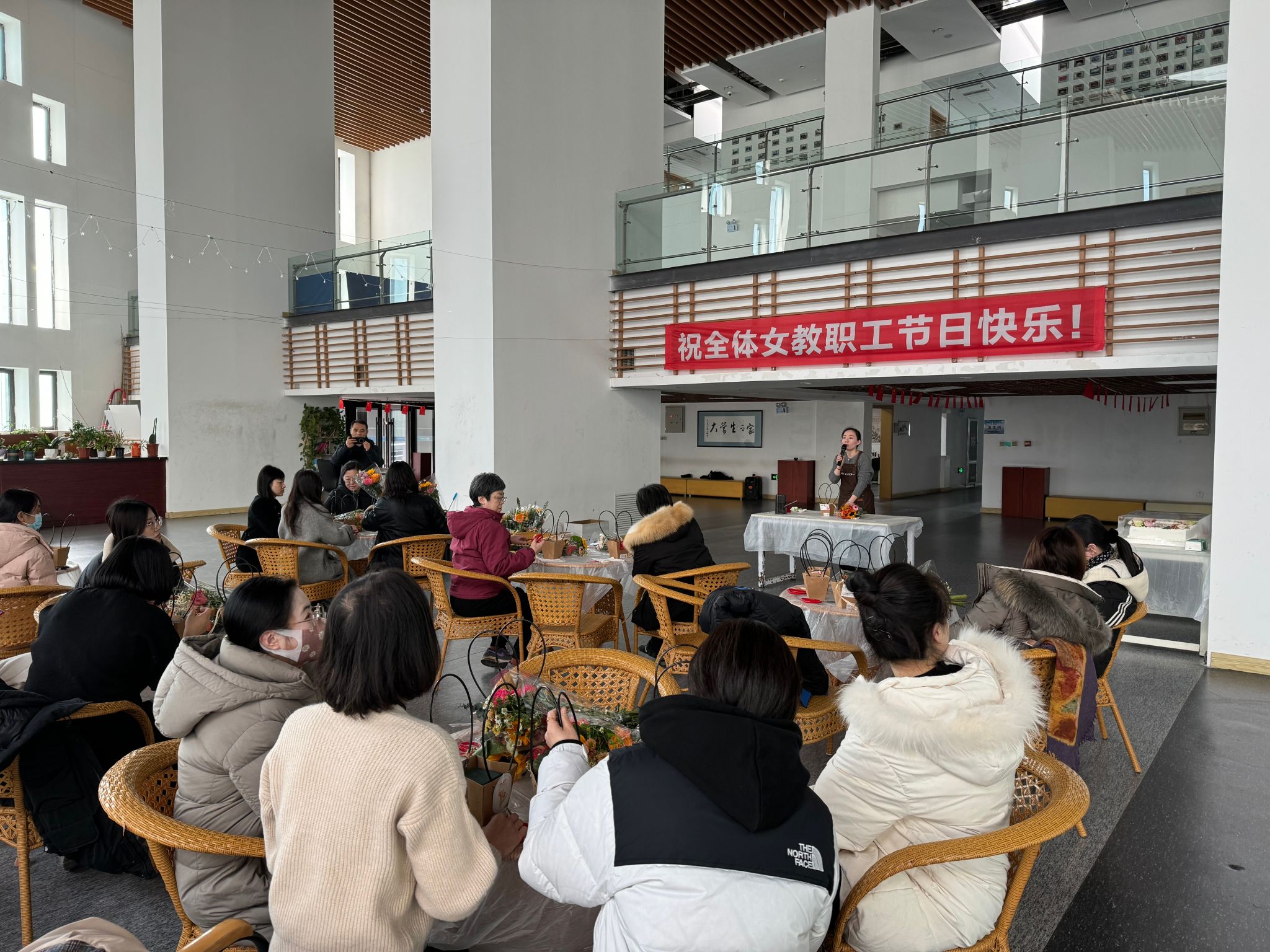 3月6日下午,校区E02大学生活动中心一楼大厅花香浓郁,阵阵花香扑鼻而来。为庆祝第114个“三八”国际劳动妇女节,深入学习贯彻党的二十大精神,落实中国妇女十三大精神,丰富校区女教职工文化生活,校区党工委工会开展盘锦校区2024年“三八”国际劳动妇女节创意插花活动。