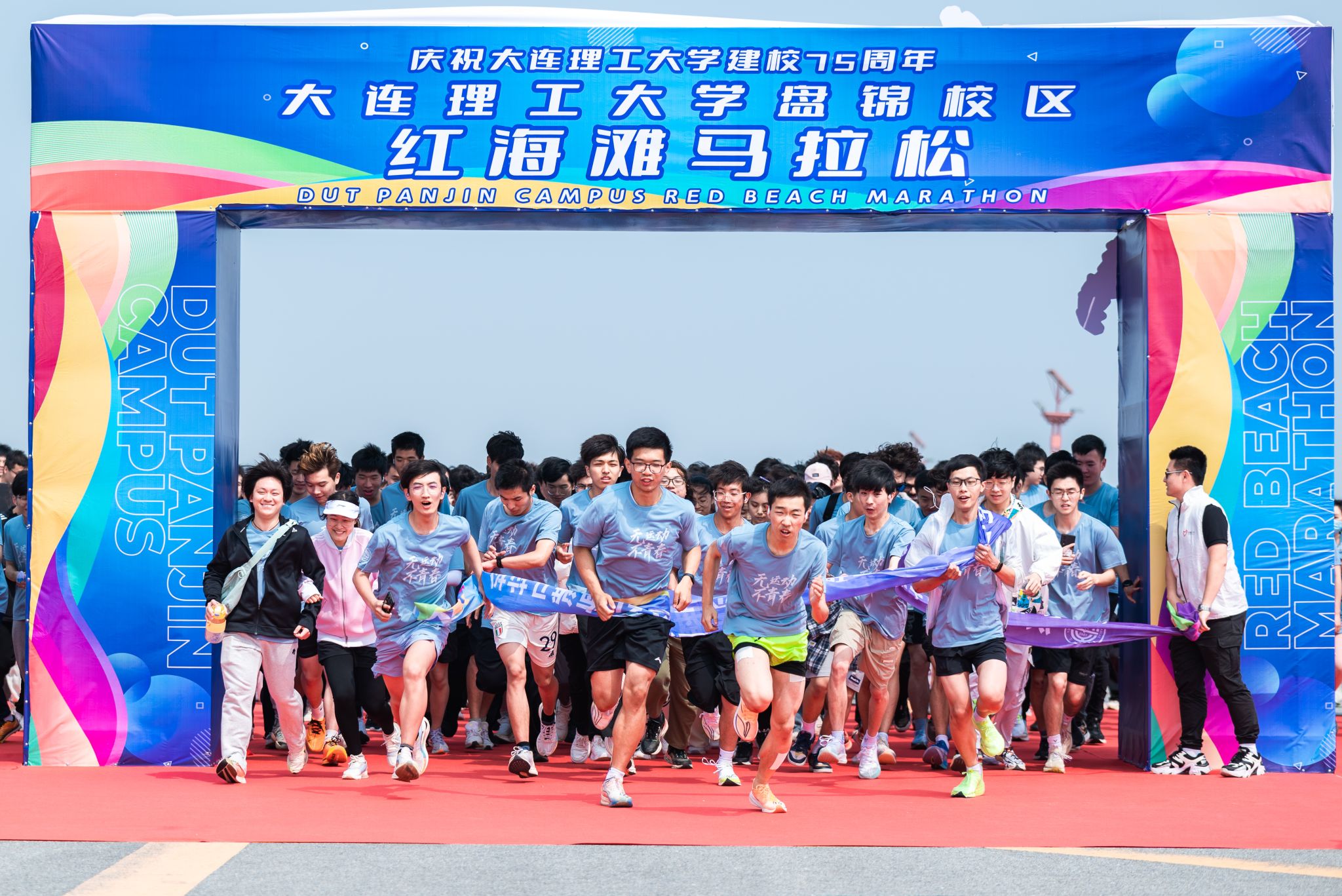 5月22日下午,大连理工大学盘锦校区红海滩马拉松活力开跑,700余名校区师生、校友相聚在红海滩,用奔跑的步履展现青春活力,用蓬勃的朝气庆祝建校75周年。校区领导、盘锦文旅集团负责人出席活动。