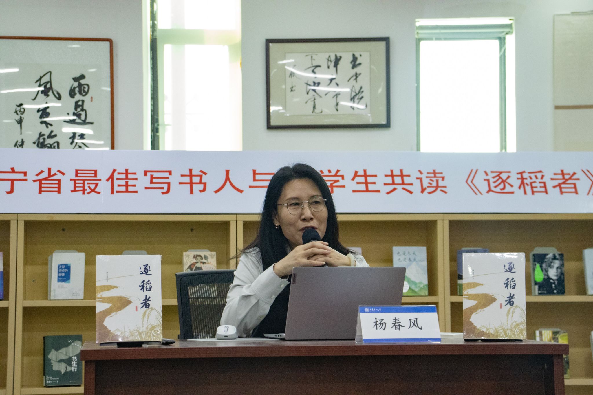 10月9日,中国作家协会会员、辽宁省作家协会散文报告文学专委会主任、盘锦市作家协会主席杨春风应邀做客大连理工大学盘锦校区,参与自强书院通识教育《大学学习与生活》,专题讲授《逐稻者》创作背后的故事。