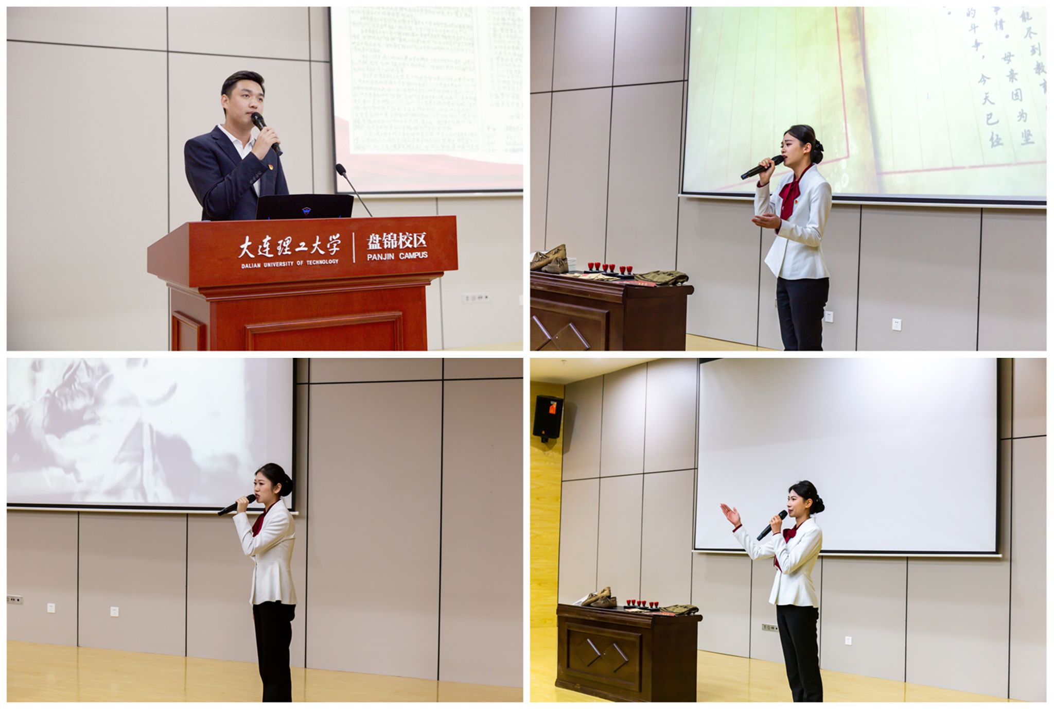 “九·一八”历史博物馆讲解组组长、主讲人王浩涵通过史实图片、抗战时期的珍贵文物以及数字化技术展示,生动讲述了辽宁在抗日战争、解放战争、抗美援朝、新中国建设、改革开放、进入新时代等多个时期的红色故事,将辽宁作为抗日战争起始地、解放战争转折地、新中国国歌素材地、抗美援朝出征地、共和国工业奠基地、雷锋精神发祥地的红色“六地”文化印记深深烙印在了每一位师生的心中。讲解员姜雅楠、杨钦友、牛诗文分别结合纪录片素材,声情并茂地讲述了抗日英雄赵一曼、国歌素材重要来源高鹏振、抗美援朝长津湖之战“冰雕连”等感人故事。讲座最后,讲解团队还介绍了新时代辽宁“六地”建设,通过将辽宁红色“六地”文化与新时代辽宁“六地”建设,即“国家重大战略支撑地”“重大技术创新策源地”“具有国际竞争力的先进制造业新高地”“现代化大农业发展先行地”“高品质文体旅融合发展示范地”“东北亚开放合作枢纽地”相融合,进一步加强“爱辽兴辽”教育,坚定打好新时代辽沈战役的决心和信心。