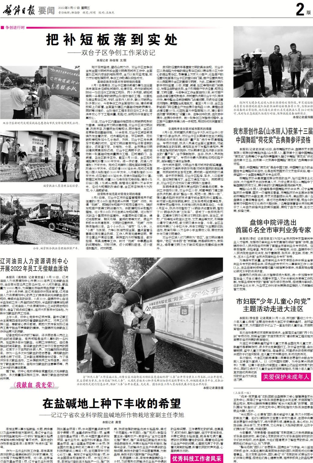 (新闻摘自2022年8月17日《盘锦日报》1、2版)