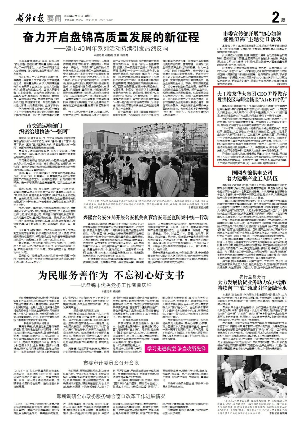 《盘锦日报》(2024年7月10日 2版)
