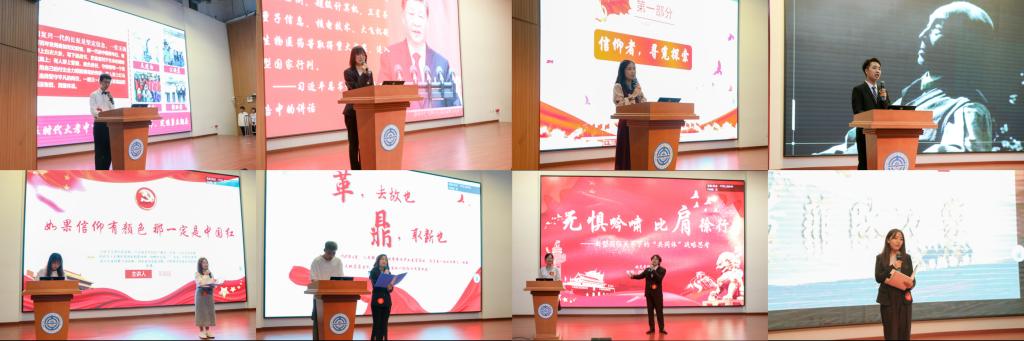 历经近两个月的激烈比拼和精心雕琢,从初赛、复赛脱颖而出的八支队伍终于在决赛舞台上与观众见面。从“四渡赤水”到“丝绸之路”,从“信仰之光”到“天下大同”,从“玉兰之约”到“强国之梦”,八支队伍的主讲人意气风发,向现场观众倾情讲述了一段段振奋人心的红色故事,带领学院师生共同开启一场印象深刻的红色学习之旅。