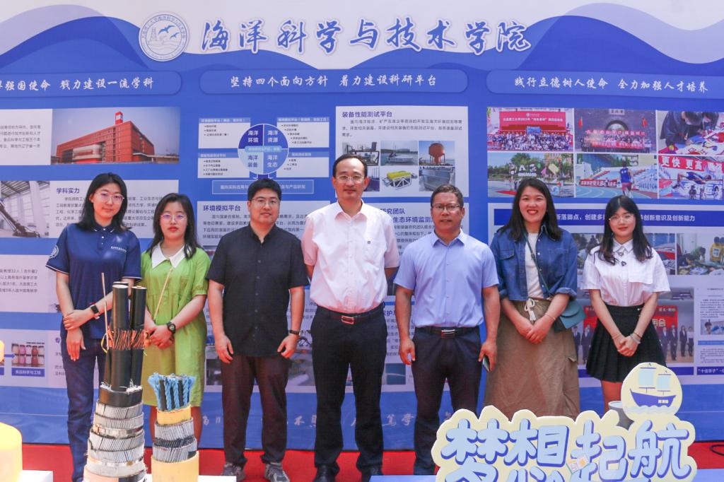 上午9时,嘉年华活动盛大开幕,学院展区前早已人潮涌动,摩肩擦踵,学院院长张大勇教授,党委书记柳丽芬教授,副院长包永明教授,党委副书记、副院长罗利老师也来到学院展区进行指导。海洋学院展出的实物展品如无人机、脐带缆、海底电缆、限弯器与浮力块以其独特的科研魅力吸引了广大师生与青少年的目光,引人驻足围观。