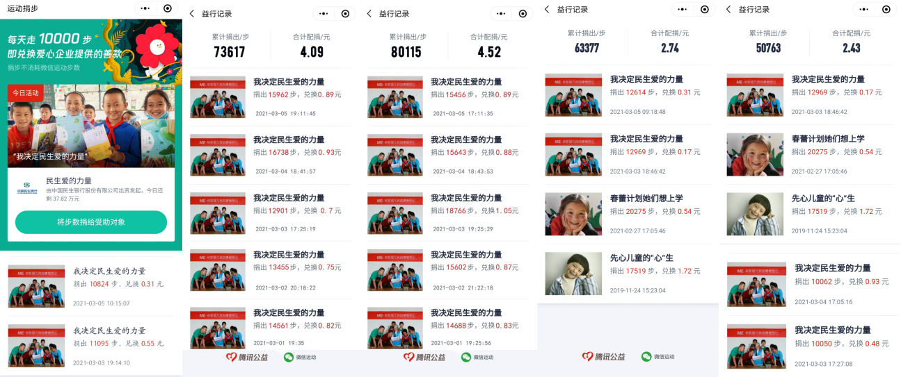 为传播“学习雷锋、奉献他人、提升自己”的志愿服务理念,号召学院学生以步代车,将每日走路的步数兑换成善款为慈善事业助力,将步数捐赠给困难儿童。学院学生广泛参与,在低碳环保的同时,为慈善做出贡献,让“学雷锋做公益”成为了一种生活方式。
