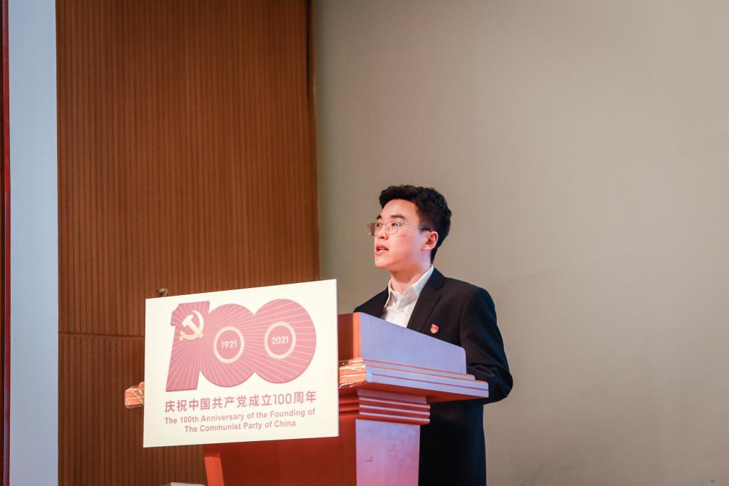 学生党员代表田黎明代表全体学生党员做表态发言,他表示作为学生党员,作为大工学子,必须把党史学习好总结好,将党的成功经验传承好发扬好,积极参与学校学院组织的党史学习教育,深入学习党史,发扬红色传统,传承红色基因。
