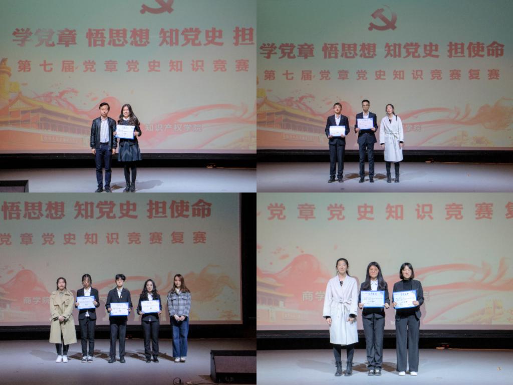 为庆祝中国共产党成立100周年,重温中国共产党光辉历程,更好地继承和发扬党的光荣传统和优良作风,坚定理想信念,商学院、知识产权学院“学党章,悟思想,知党史,担使命”党章党史知识竞赛于4月11日下午在E03大礼堂举办,学院辅导员肖启、晁苗苗、彭博和齐心愉出席本次比赛。