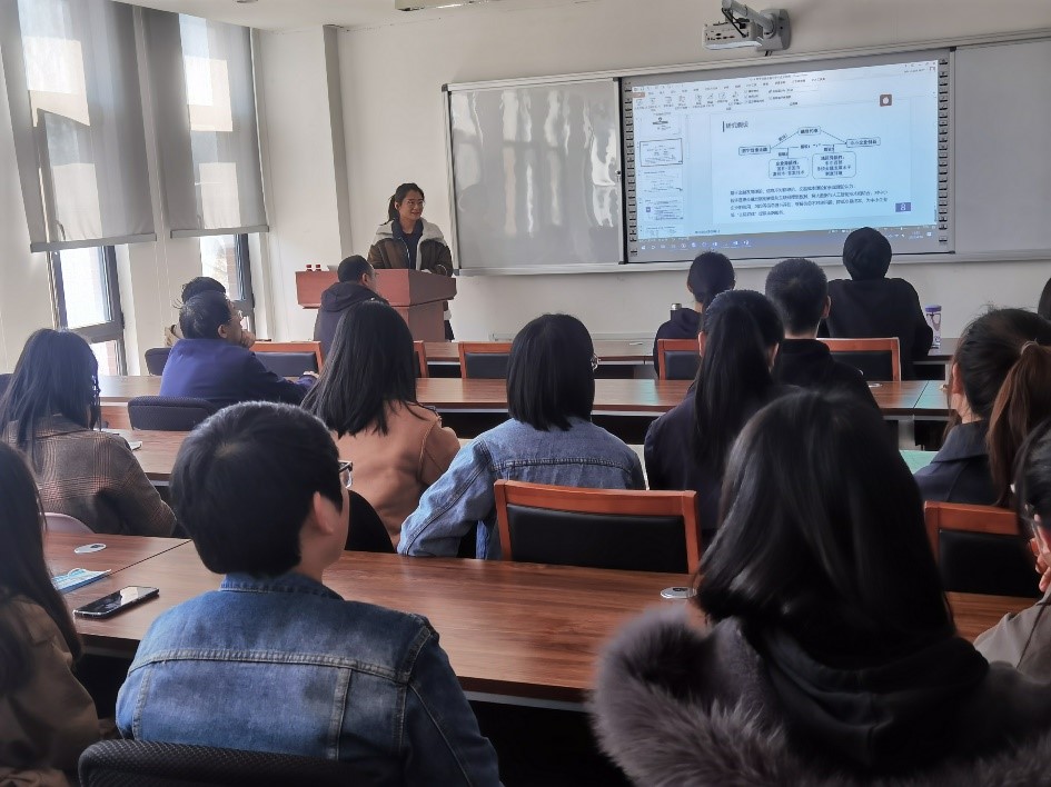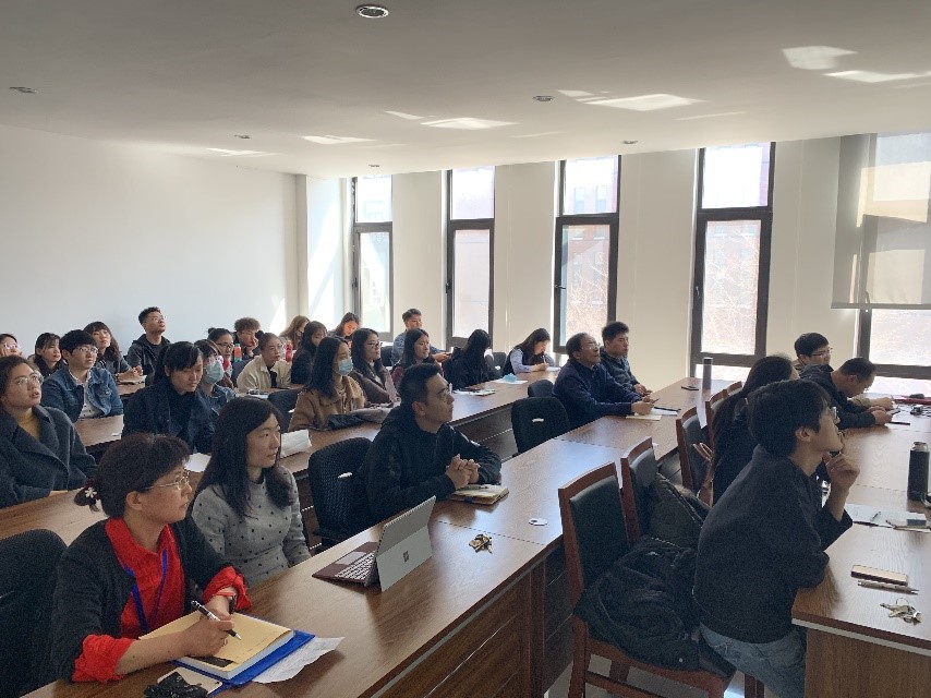 第二次交流会由研究生张朦朦进行学术报告,栾春娟教授、王昱副教授、高洋副教授、薛星群副教授、郎香香老师、林原老师、李良玉老师、蒋大可老师以及全体研究生参会。