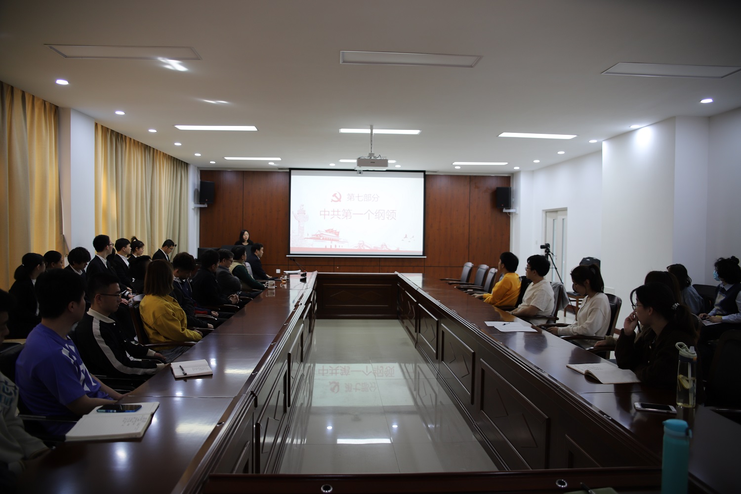 学习汇报会上,第一组10位师生共同讲述了中国共产党从创立到中共三大召开的历史进程,重点回顾各个事件节点的背景意义及重要成果。讲述过程中,同学们还将中共一大代表人物、工人领袖的感人故事穿插其中,以家书诵读的形式与现场师生分享,现场师生共同回顾历史,从峥嵘历史中感叹中国共产党建立的艰辛和不易,从革命先辈的人生轨迹中感悟初心使命,汲取奋进力量。