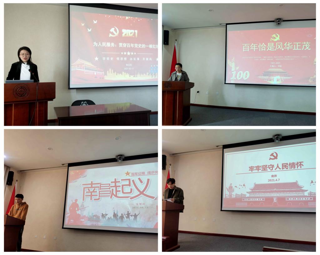 党支部书记陈玉阳以“为人民服务——贯穿百年党史的一根红线”为主题。从重温毛泽东《为人民服务》、中国共产党人的初心和使命、全心全意为人民服务的楷模三个方面,分享为人民服务的深刻内涵和时代意义,鼓励同学们继承共产党人的优秀传统,为国家发展贡献才智力量。