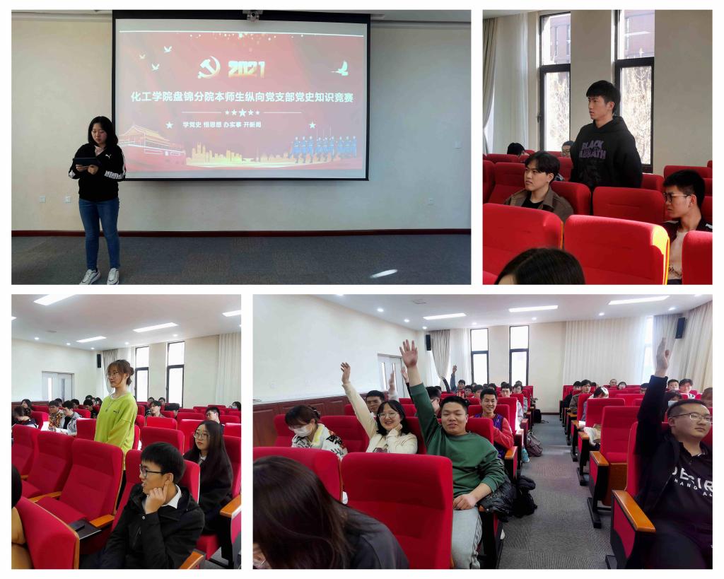 化工学院盘锦分院本师生纵向党支部深入学习贯彻习近平总书记在党史学习教育动员大会上的重要讲话精神,将“四史”学习融入日常学习生活,以赛促学、以学促用,真正做到“学史明理、学史增信、学史崇德、学史力行”。学四史守初心,扬激励再奋进,以优异成绩迎接建党百年。