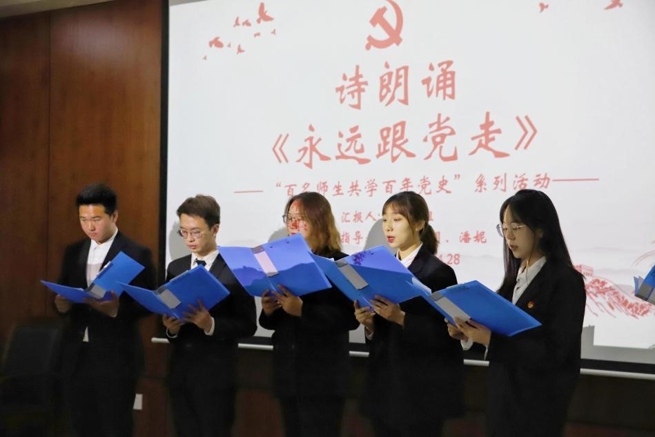 学习汇报会在集体诗朗诵《永远跟党走》中落下帷幕。如诗中所述:“中国共产党是舵手,是永远不落的太阳。”新一代年轻人要向老一代革命先驱一样,拥有把青春献给信仰,把生命献给革命的大无畏精神,这样红船精神才会得以延续,代代相传。新一代年轻人更要多学习、多了解我国历史文化,通过学习丰富自己的内心,升华自己的灵魂。