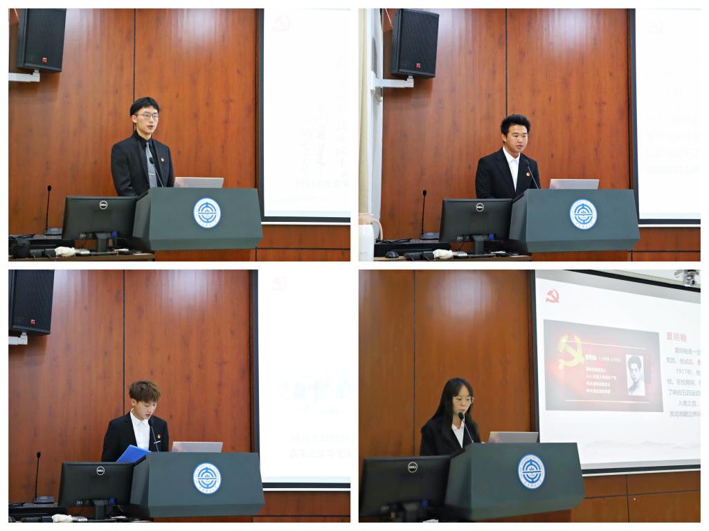 此次汇报以“百年正是风华茂,初心不改永向前”为主题,首先观看视频《百年恰是风华正茂》,视频展现了中华民族是怎样在百年间完成从站起来、富起来到强起来的奋斗历程。随后,第四小组成员分享了1927年到1931年期间南昌起义、广州起义、秋收起义等事件,与现场师生共同回顾为革命事业献出青春与热血的烈士光辉事迹。