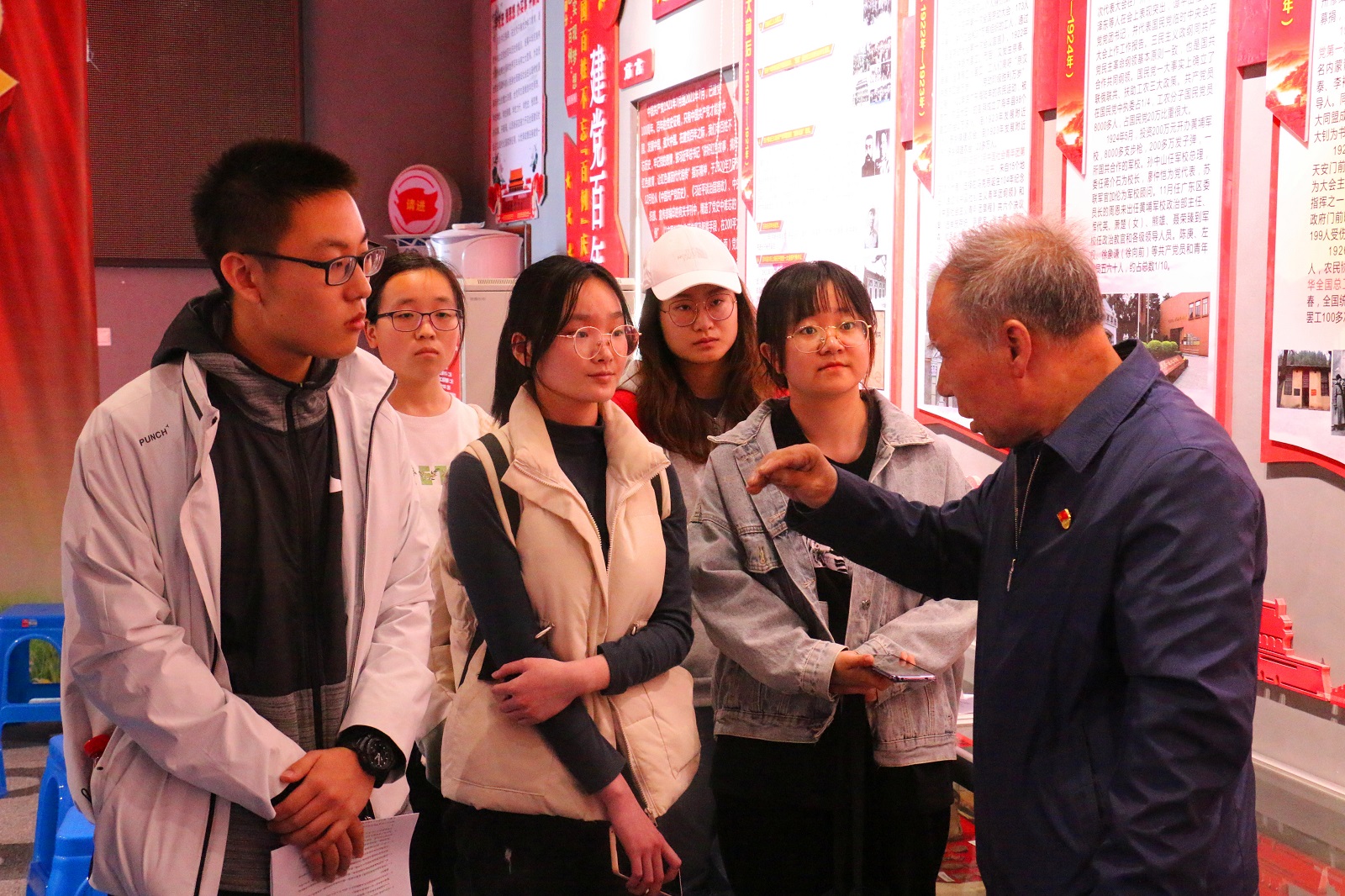 在座谈会上,徐恩惠同志讲述学习党史的心得,分享展馆修建思路、展品的由来和“百例”筛选的过程等,并观看了党史教育纪录片。随后,徐恩惠同志向与会师生提出了党史学习的“三不摆”、“两务必”要求,即在学习党史的过程中,要做到不摆官职、不摆学历、不摆年龄;务必保持谦虚谨慎、戒骄戒躁的态度,务必保持艰苦奋斗的精神。徐恩惠同志解释道,在拥有百年悠久灿烂历史的党的母亲面前,我们每个人都应该怀着赤忱的心去认真学习、认真感悟。只有真正达到了“三不摆”和“两务必”的要求,我们才能杜绝形式主义,切实有效的从党史中学习知识,汲取营养。最后,徐恩惠同志也表达了对同学们的殷切关怀和期许,鼓励大家发奋读书,将来为建设社会主义祖国贡献自己的青春力量。