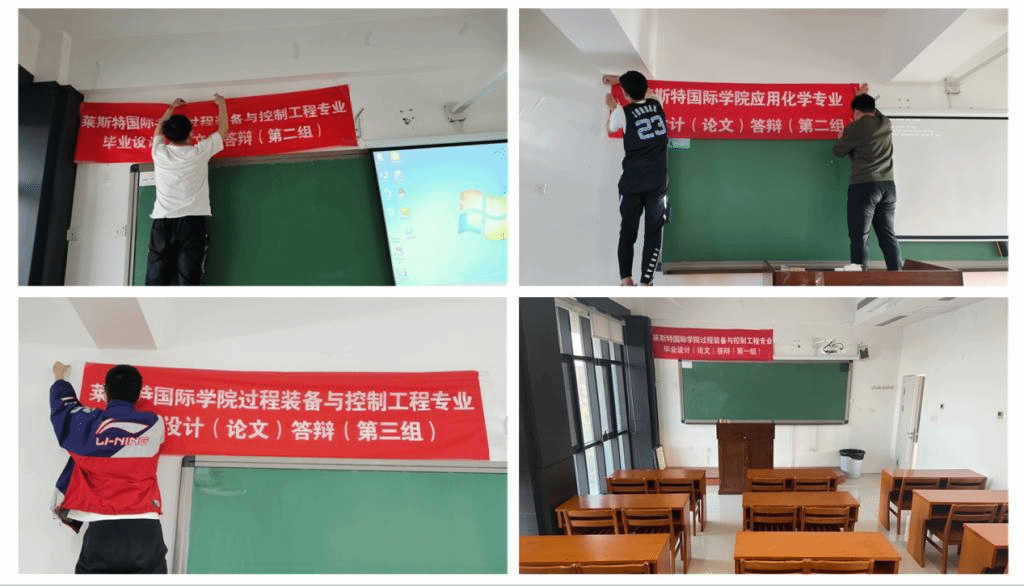 本次答辩,莱斯特国际学院高度重视,成立工作专组,制定了详细的实施方案,多次召开答辩工作会议,认真安排部署答辩各环节,反复与答辩组的老师们沟通强调注意事项及评分标准,并将答辩流程进行反复演练。工作组提前完成了答辩分组、分组建群、论文评阅、教室安排等工作。5月25日,莱斯特国际学院安排老师和志愿者提前对答辩教室进行清扫、布置、设备调试,并在调试过程中发现设备故障问题,及时作出调整,保证了答辩工作的顺利进行。