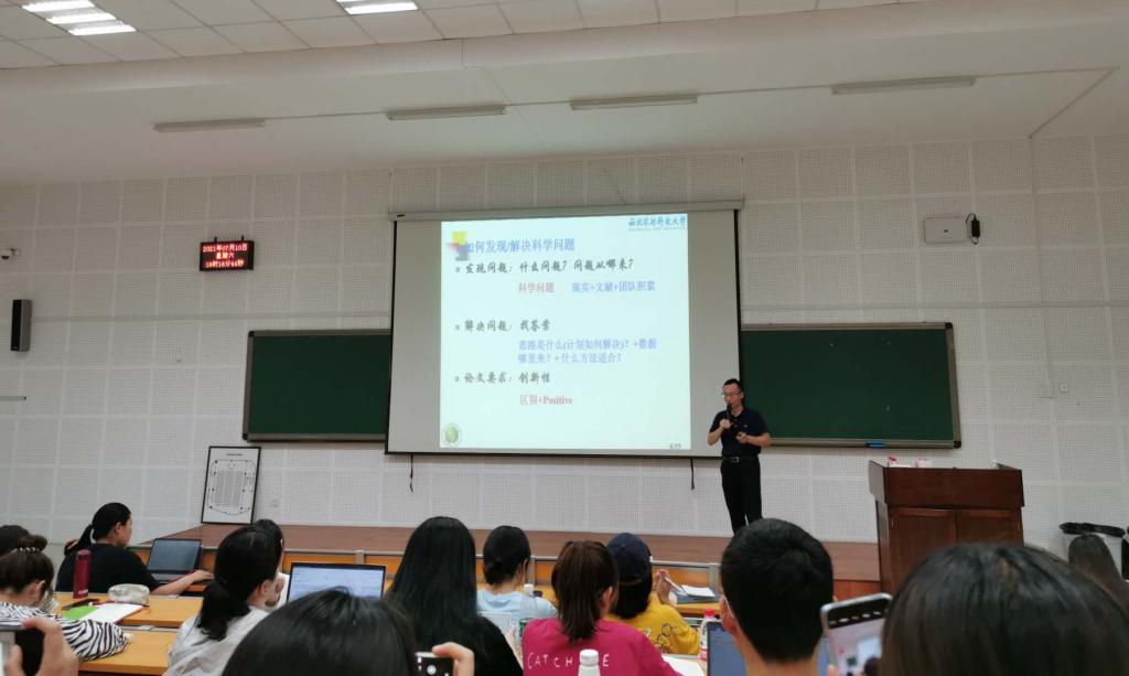 7月10日晚,西北农林科技大学信用大数据应用研究中心主任、经济管理学院教授、博士生导师石宝峰教授为商学院、知识产权学院本科生讲授主题为“本科生如何发现和解决科学问题”的导论课。本次课程由商学院郎香香老师主持,商学院崔丽副教授出席导论课。