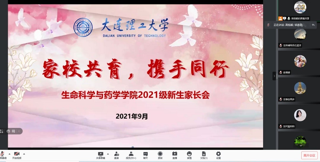 新学期,新起点。生命科学与药学学院2021级新生线上家长会的顺利召开,为学院家校协同育人工作创造了良好的开端,进一步营造了积极、健康、共赢的家校共育氛围。只有学校教育接力家庭教育,家庭教育配合学校教育,才能使学校教育更加温馨、更富成效,才能最终实现立德树人根本任务。