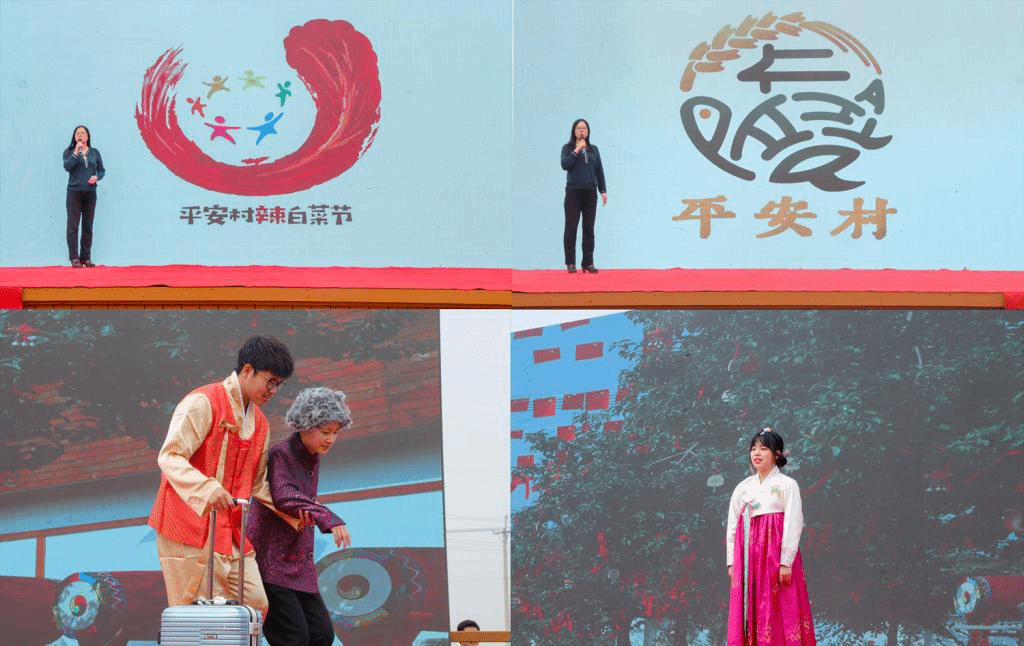 启动仪式以一组精彩的朝鲜族舞蹈开场,展现了颇具特色的朝鲜族民族风采。随后,学院崔丽副教授作为学院代表细致讲解了由学院师生团队设计的平安村及辣白菜节Logo的内涵、寓意和设计由来。接下来由学院师生团队自导自演的《平安树祈福》情景剧,生动讲述了随着祖国的繁荣发展,平安村青年从赴韩打工到返乡共建美丽乡村的心路历程和赤诚初心。