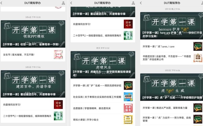 网络育人延伸课。学院编辑制作“开学第一课”系列主题推送,涵盖思想引领、疫情防控、学风建设、创新创业等,以同学们喜闻乐见的方式进行呈现,引导商知学子进一步坚定理想信念,明晰发展规划,以良好的精神面貌迎接新学期。