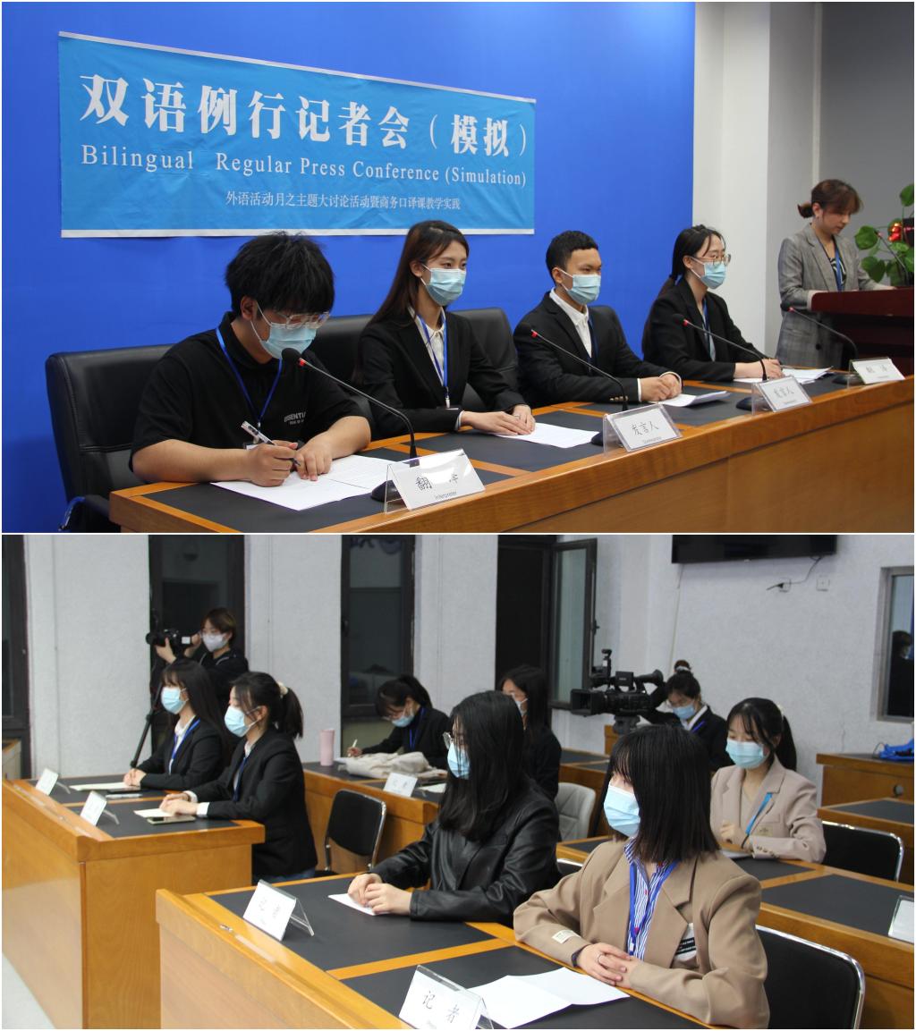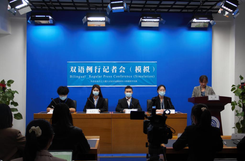 模拟双语记者会邀请专业班主任、辅导员、学院班子成员等参加,和学生们共同分饰主持人、发言人、记者、翻译等角色,紧紧围绕“坚持动态清零政策不动摇”“高校疫情防控的有效政策推演”等主题展开。在模拟现场,“新闻记者”视角独特、提问犀利,而“新闻发言人”则积极应对、巧妙回答,“新闻翻译官”临危不乱、沉着冷静,一来一往精彩问答场面不断,高潮迭起,气氛非常热烈。