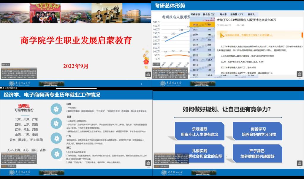 为帮助我院2022级新生尽快适应大学学习生活,顺利完成从高中生到大学生的角色转变,引导他们从入学伊始就能制定科学的发展规划,以昂扬向上的精神风貌迎接崭新的四年大学学习生活,商学院、知识产权学院自9月1日起有计划有组织地开展新生入学教育,从理想信念、生涯规划、专业认知等方面对2022级新生进行系统化指导。