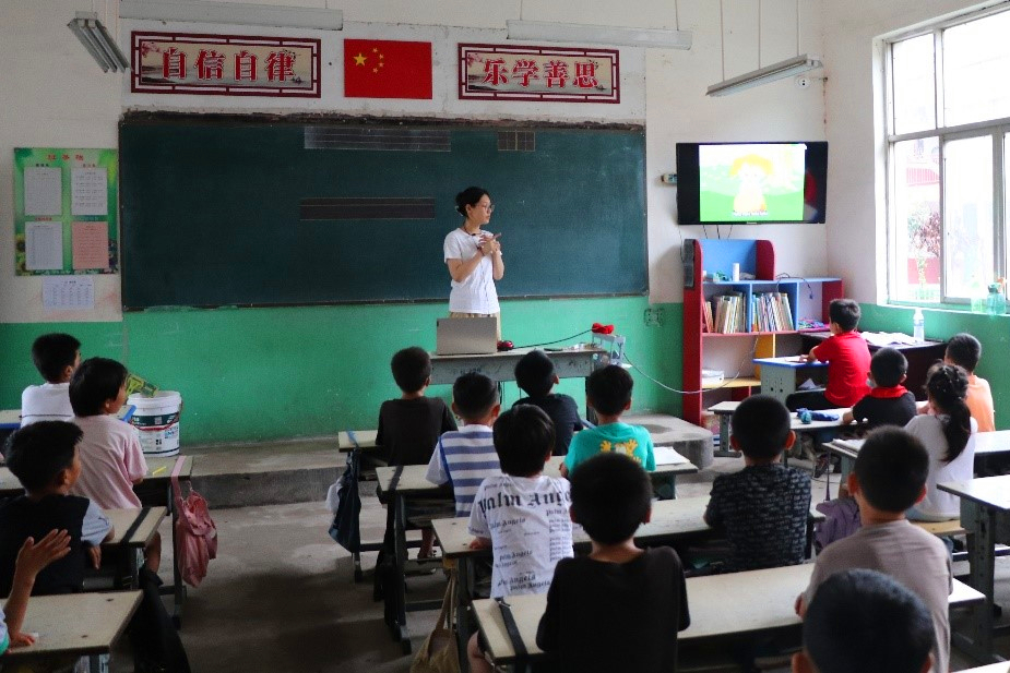 周晗紫伊同学参与“相豫碱蓬火”支教项目,为河南省南乐县学生进行英语授课