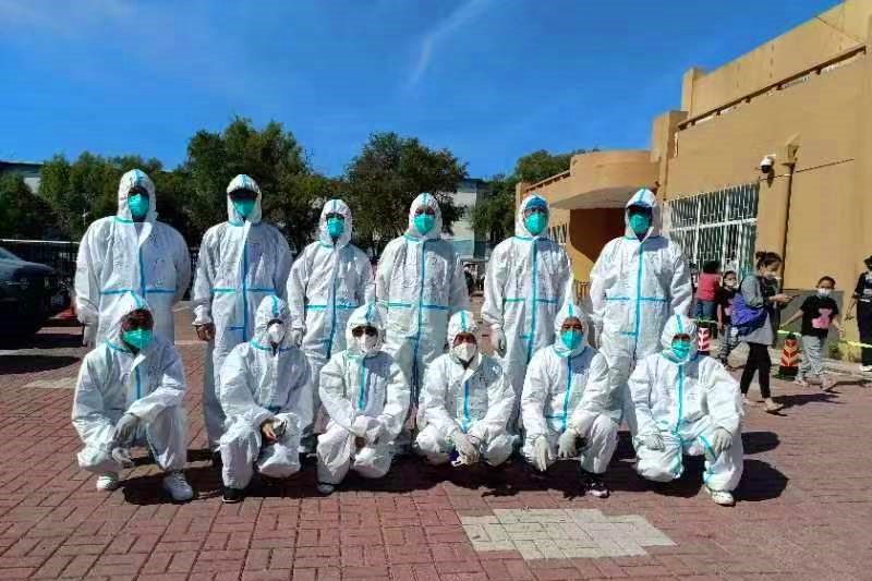 李欣梦同学化身“大白”参与黑龙江省大庆市乘风四社区全民核酸检测工作