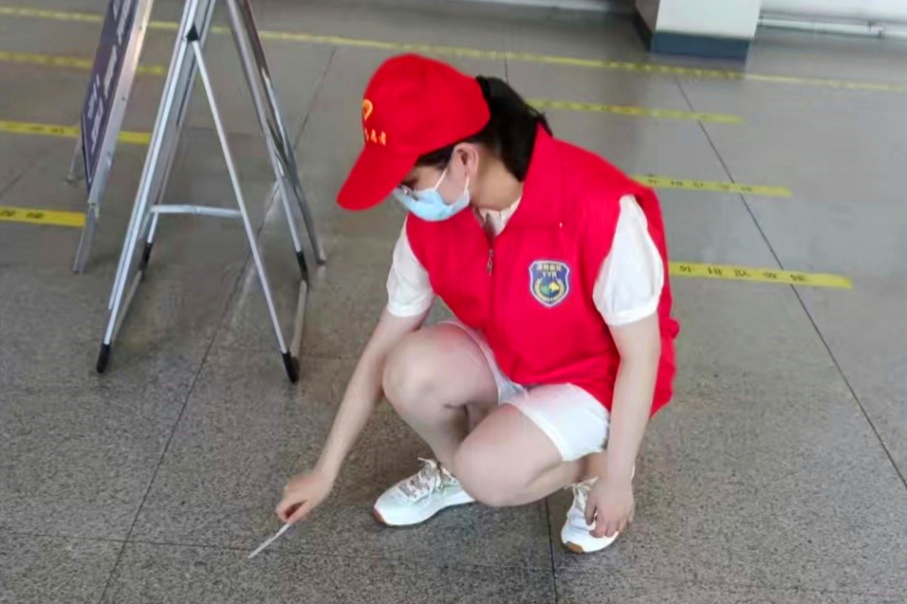沈佩瑜同学在黑龙江省哈尔滨市山水社区参与防疫志愿服务