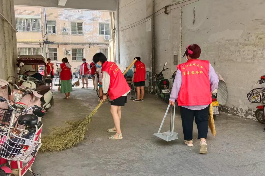 吴金晴同学参加城市文明清洁活动为无物业退休职工小区打扫卫生