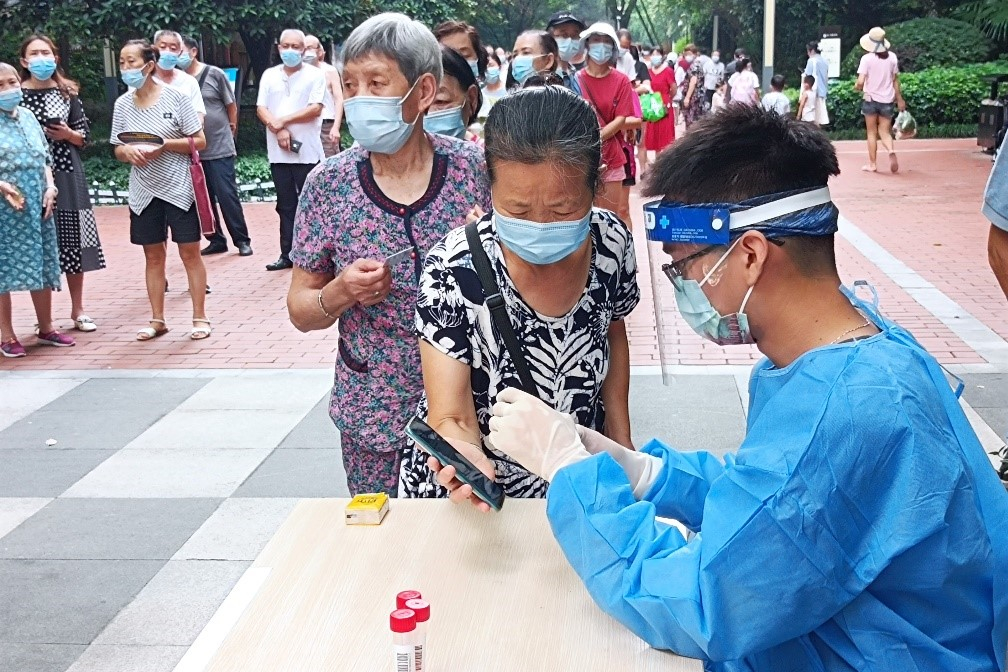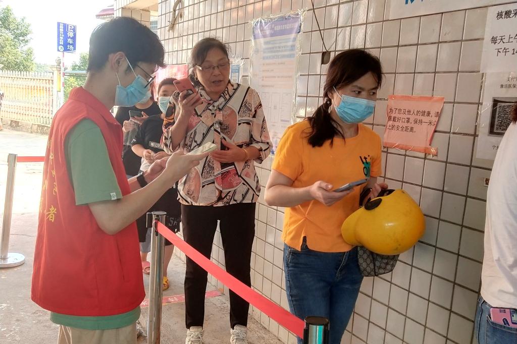 蒲奕丞同学在社区全员核酸检测中为居民进行扫码登记