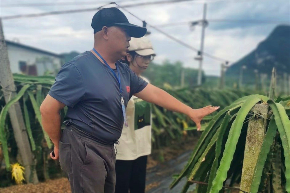 黄智美同学在农业种植园区与广西崇左市中东镇原副镇长采访交流
