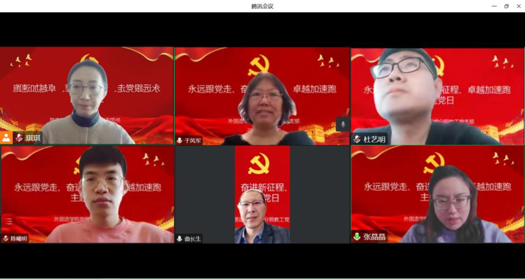 12月14日下午,外国语学院盘锦分院教工党支部召开“永远跟党走、奋进新征程、卓越加速跑”线上主题党日,专题学习《中国共产党章程(修正案)》。盘锦校区党工委副书记、管委会副主任曲长生受邀参加会议,会议由党支部书记于风军教授主持。