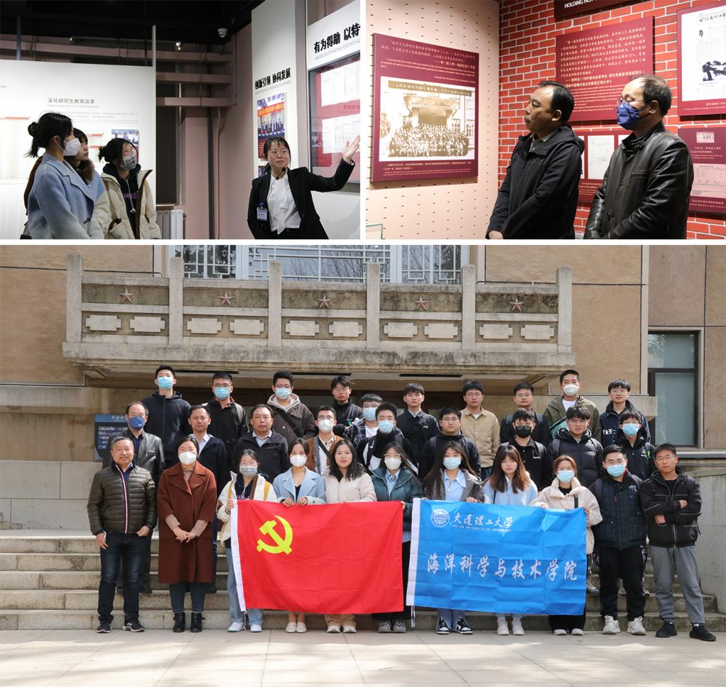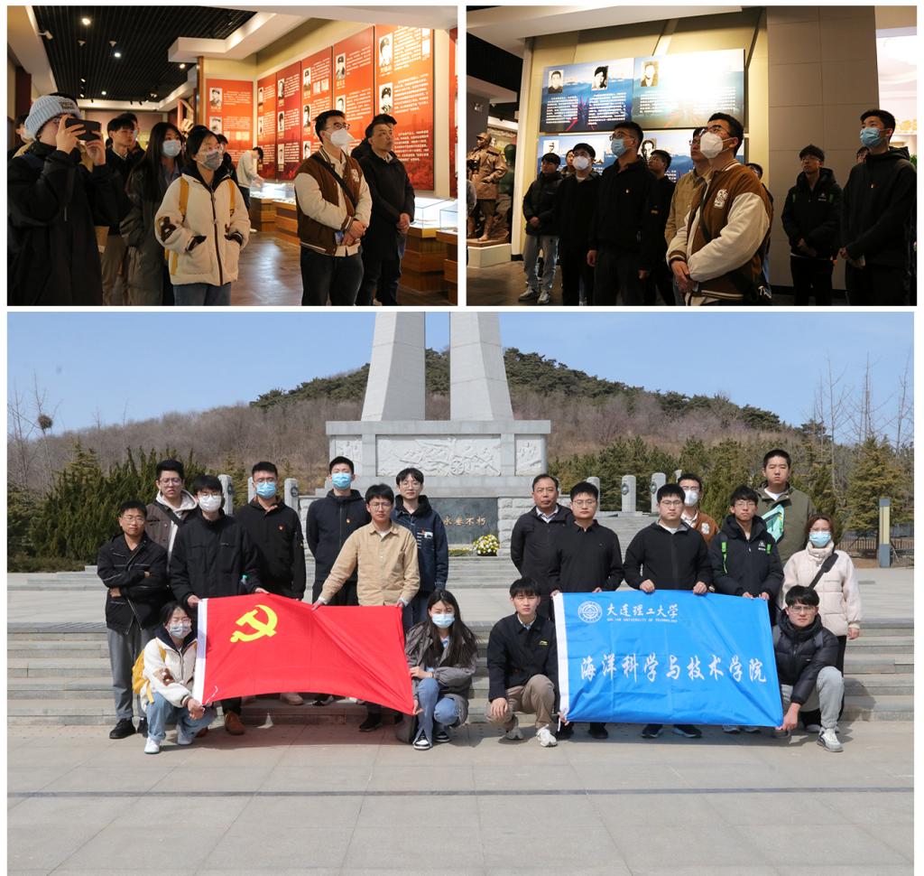为深入学习贯彻党的二十大精神和学校第十四次党代会精神,推进“一融双高”建设,促进师生党员间的交流学习,加强师生的思想政治教育,海洋科学与技术学院党委组织师生党员于3月24日开展“支部共建促发展,师生联动聚合力”主题党日活动,师生党员前往大连理工大学校史馆、大连市烈士纪念馆和旅顺日俄监狱旧址博物馆参观学习。本次活动由海洋科学与技术学院教工第一党支部和研究生第一党支部发起,学院教师党员、研究生党员参加活动。