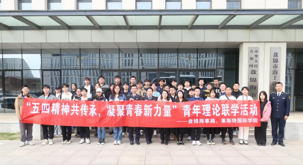 为深入学习贯彻党的二十大精神,推动落实学校第十四次党代会精神,扎实推进学院“一融双高”建设,进一步强化青年思想政治引领,在五四青年节到来之际,在共青团盘锦市委员会的全程指导下,莱斯特国际学院与盘锦海事局团总支联合开展“五四精神共传承,凝聚青春新力量”青年理论联学活动。