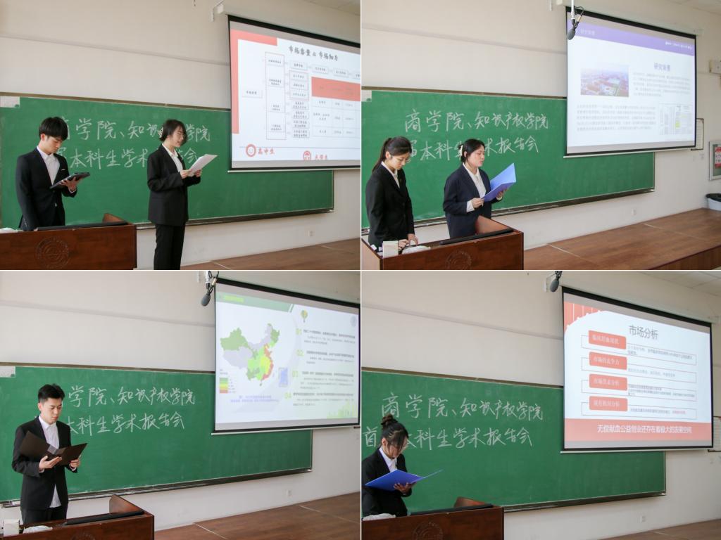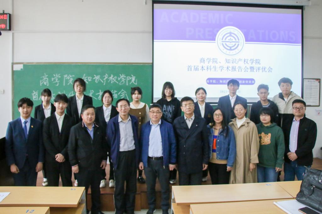 为落实立德树人根本任务,不断提升商知学子创新创业能力,商学院、知识产权学院于5月6日下午在A01-N402教室举办了首届本科生学术报告会暨评优会。商学院、知识产权学院副院长李彤和专业教师崔丽、郎香香、张倩、王文华、于波、林原、田征共8位老师出席报告会并担任评委。