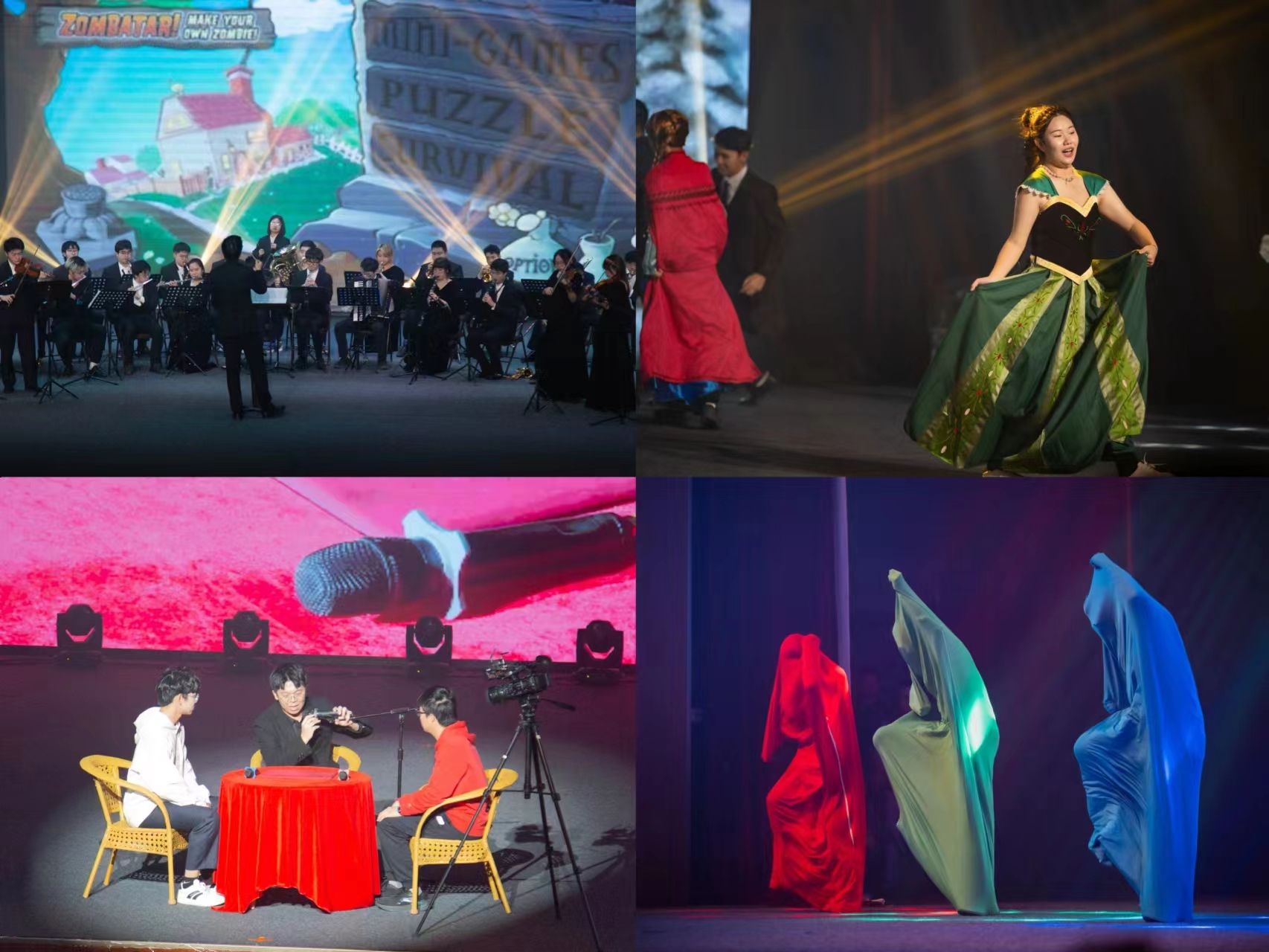 晚会以沙丁鱼乐队带来的合奏歌曲《Love Yourself》拉开序幕,器乐团演奏的《粉红豹与植物大战僵尸组曲》、零舞舞团帅气的《Burn it Up》、俏皮可爱的《Baby Shark》、变幻莫测的魔术表演等节目,将现场气氛一次次推向高潮。此外,晚会还有学院团委外务部带来的英文音乐剧《冰雪奇缘》,和中英师生共同演绎的精彩歌曲串烧、舞蹈表演,现场气氛热烈,掌声雷动。